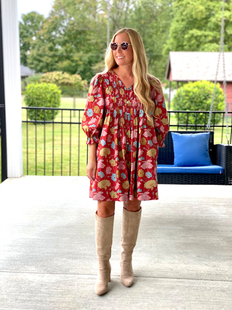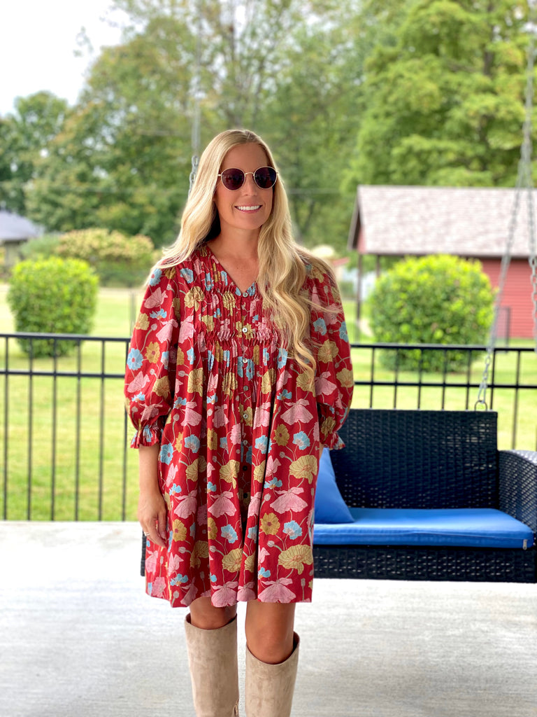 Brick Floral Mini Dress