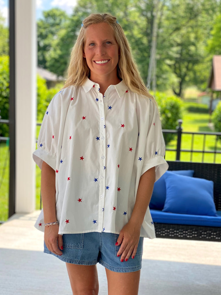 Americana Star Embroidered Top